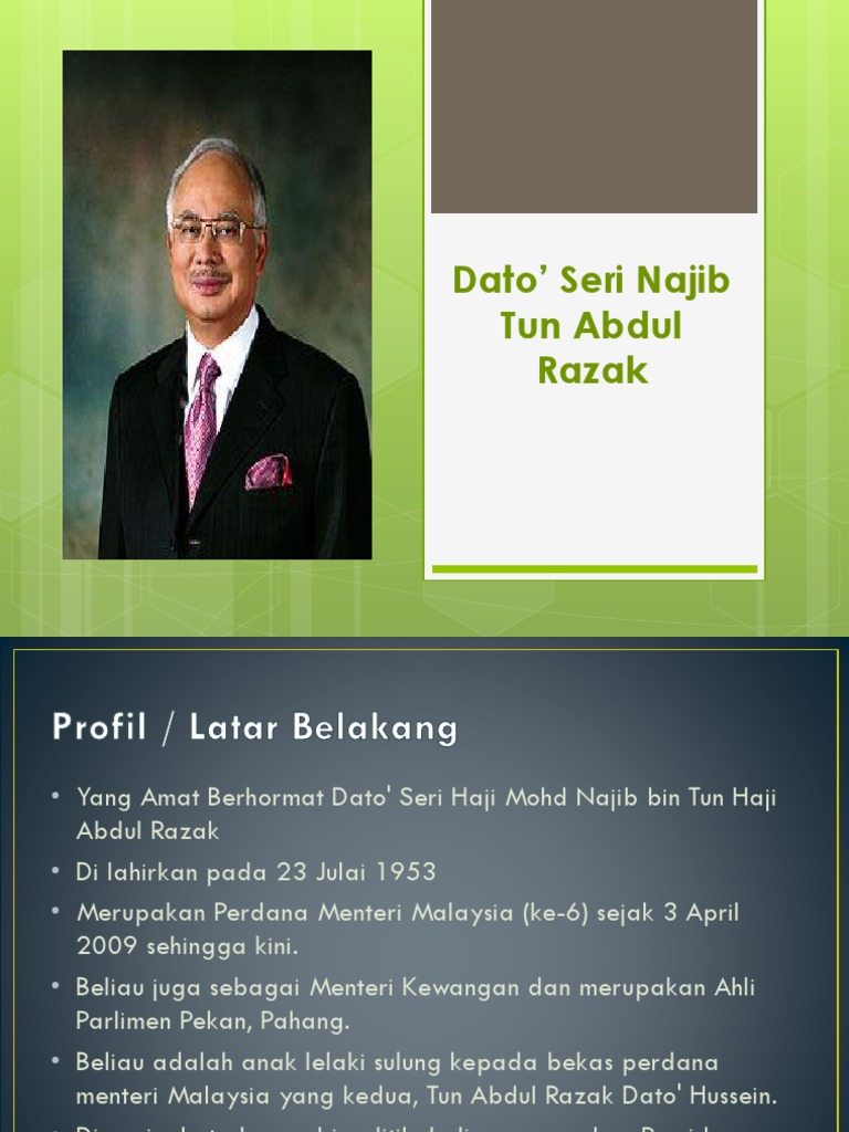 The latest tweets from @najibrazak Dato' sri haji mohammad najib bin tun haji abdul razak (born 23 july 1953) is the sixth and current prime minister of malaysia. Born 23 july 1953) is a malaysian politician who served as the 6th prime minister of malaysia from april 2009 to may 2018. Umur 67 tahun) adalah politikus malaysia yang menjabat anggota parlemen dewan rakyat daerah pemilihan pekan dan mantan perdana menteri malaysia sejak 3 april 2009. Photo from berita harian, it was held in the parliament.